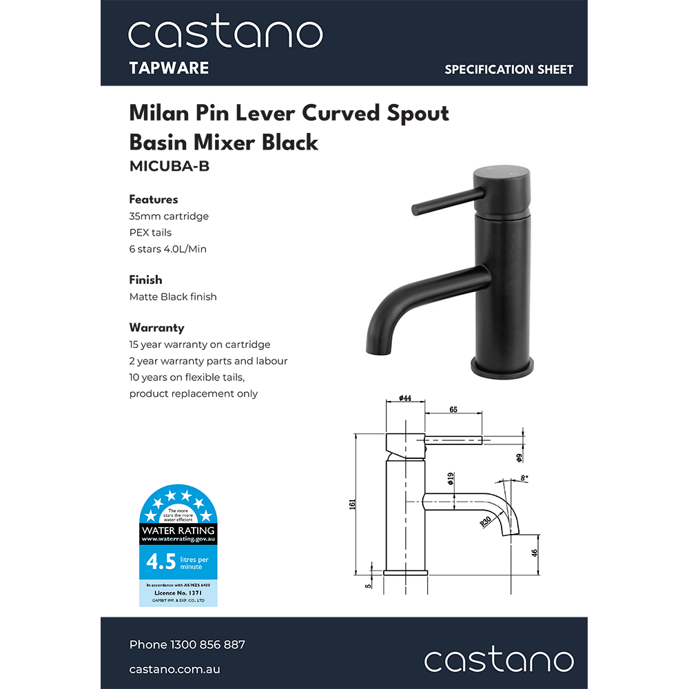 Amalfi Curved Round Pin Basin Mixer 6 Star Black